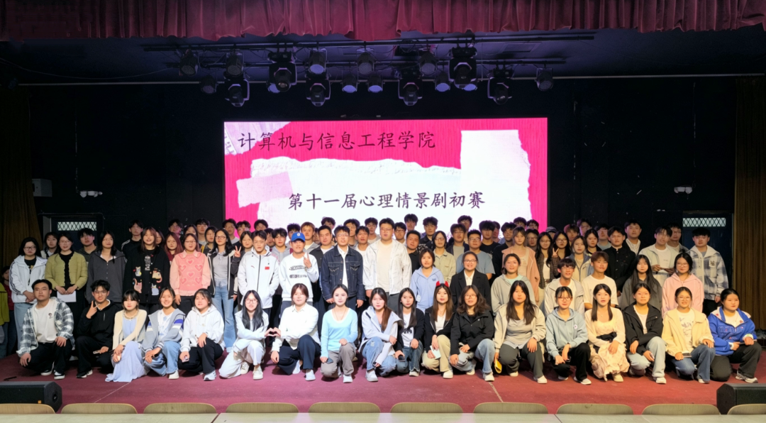 为普及心理健康知识、培育学生积极心态,丰富校园文化生活,提升学生心理调适能力,计算机与信息工程学院于2026年4月20日在和展楼阶梯教室101举办第十一届"心语杯"心理情景剧大赛。学院辅导员老师及分团委学生会主席团成员担任评委,2024级、2025级部分同学到场观看,共同感受心灵的力量。