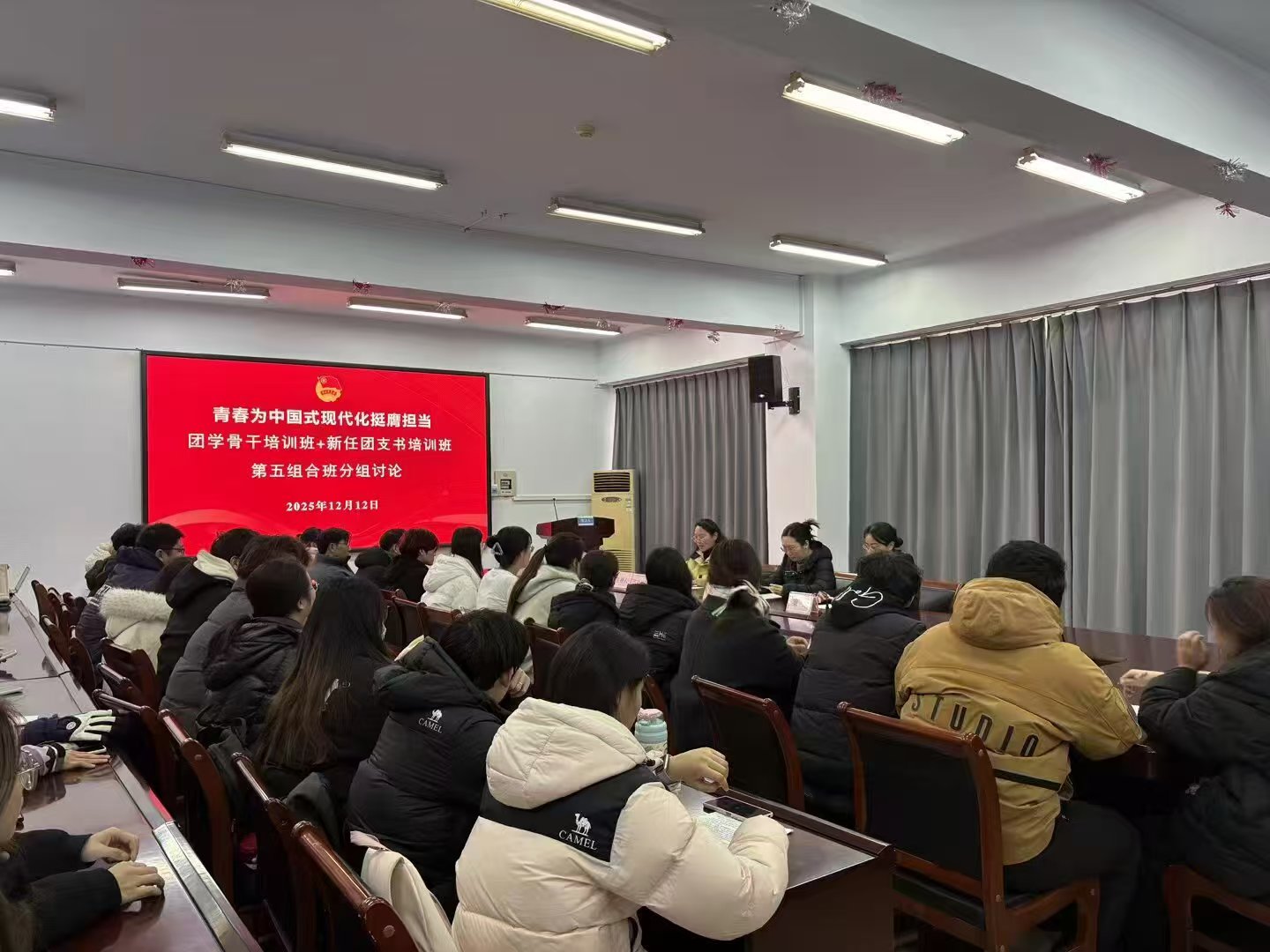 2025年12月12日中午,计算机与信息工程学院联合数学与统计学院、化学化工学院在和义楼321举行了以“青春为中国式现代化挺膺担当”为主题的团学骨干培训班与2025级新任团支书培训班(第五组)合班分组讨论活动。